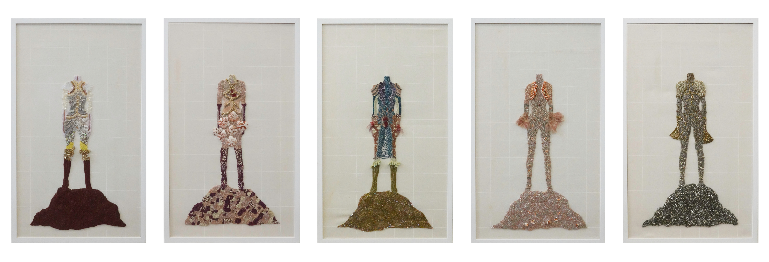 5 come together is a series about the five elements. It is inspired by a memory of my mum telling me about the origin of Punjab. The figures here are shown rising up out of the earth.